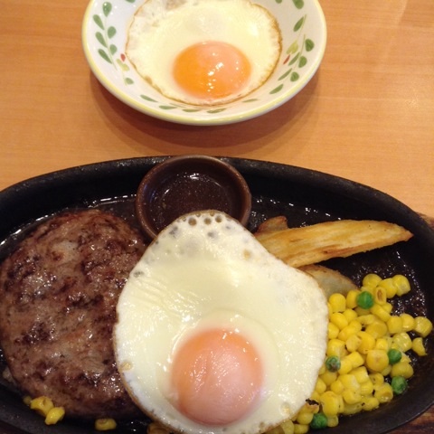 昼食:サイゼリヤでハンバーグ、たまご追加