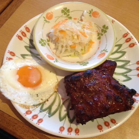 朝食:ゆでたまご、コーヒー+バター