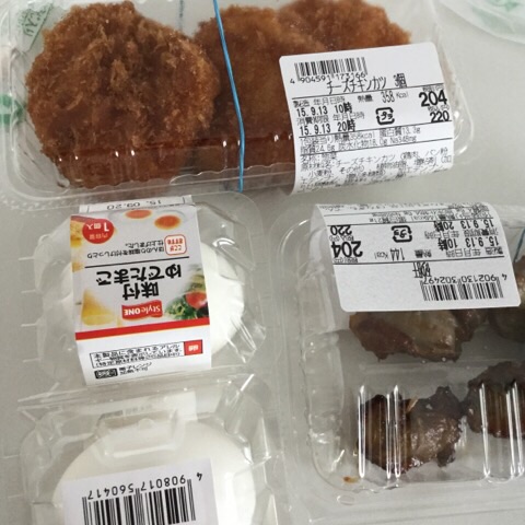 昼食:チーズチキンカツ、砂肝、ゆで卵
