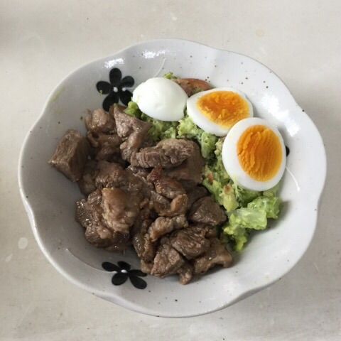 ブランチ:昨夜の残り(ステーキ、少佐サラダ)