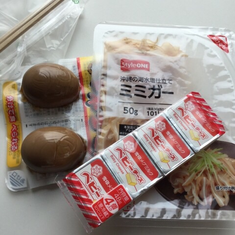 昼食:ミミガー、味付けたまご、チーズ