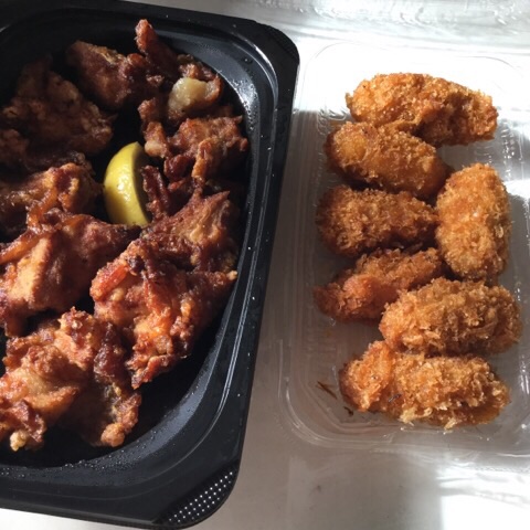 昼食:唐揚げ、カキフライ
