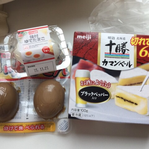 昼食:ゆでたまご、味付けたまご、チーズ