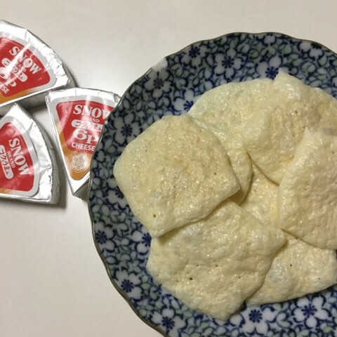夕食:チーズオムレツっぽい何か、チーズせんべい