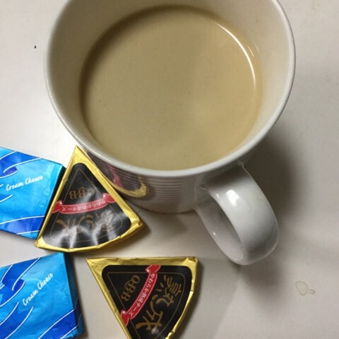 朝食:生クリーム入りコーヒー、チーズ