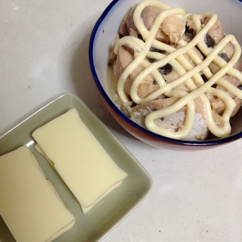 ブランチ:鮭水煮缶のマヨネーズ和え、チーズのバターサンド