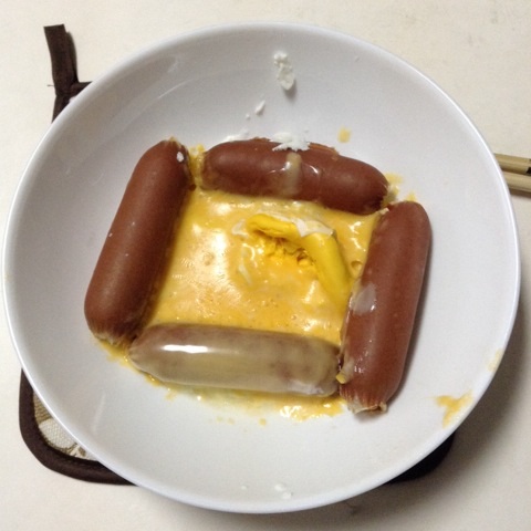 朝食:ウインナーの巣篭もりたまご チーズのっけ 糖質8gくらい