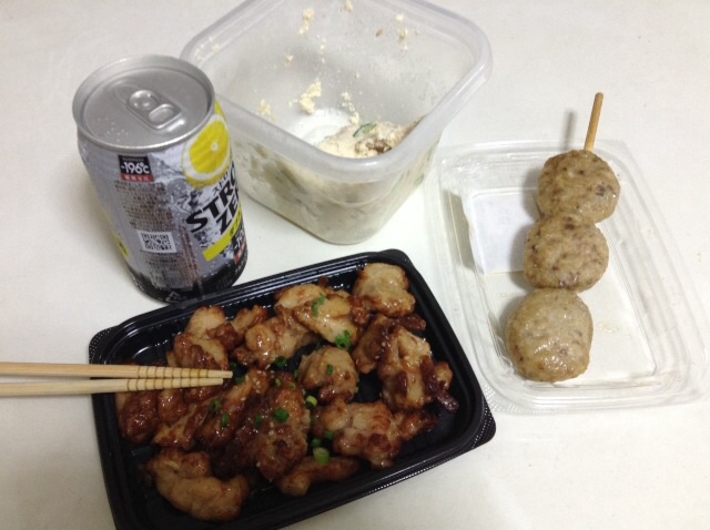 夕食:ネギ塩チキン&牛タンつくね焼き&おからサラダ&ストロングゼロ 糖質20gくらい