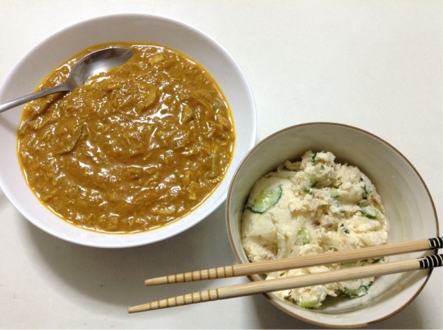 夕食:カレー+おからサラダ 糖質15gくらい