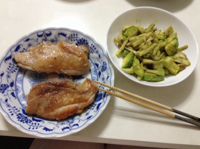 夕食:鶏ももソテー&エリンギとアボカドのソテー 糖質3gくらい