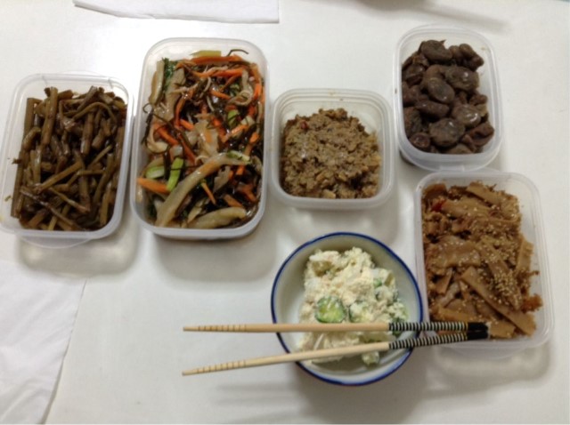 うちは二人暮らしだと言ってるのに、山盛りのお惣菜のお土産でございます(;^_^A