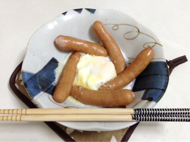 朝食:糖質ゼロウインナーの巣篭もり卵 糖質1g未満