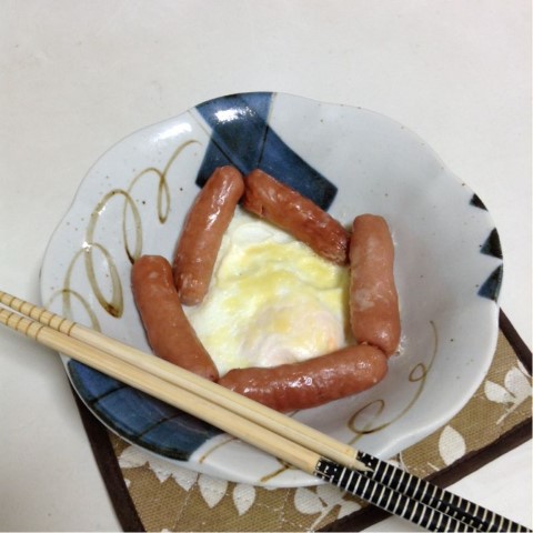 朝食:ウインナーの巣篭もり卵 糖質3gくらい