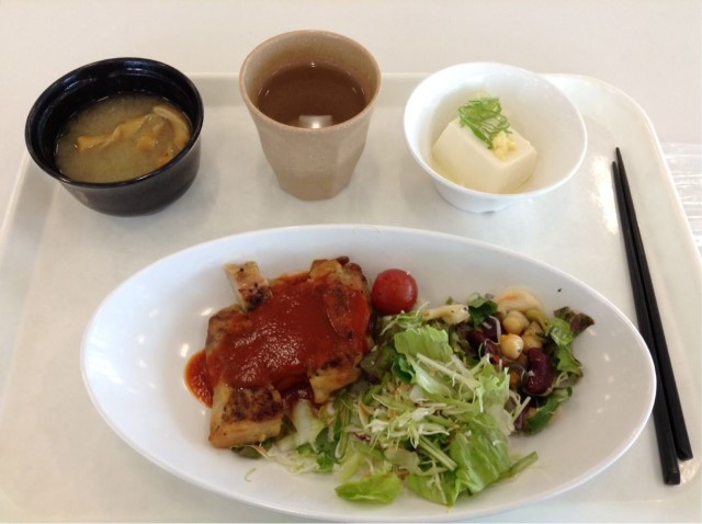 昼食:ハーブチキン定食 豆とマカロニ残し 糖質15gくらい