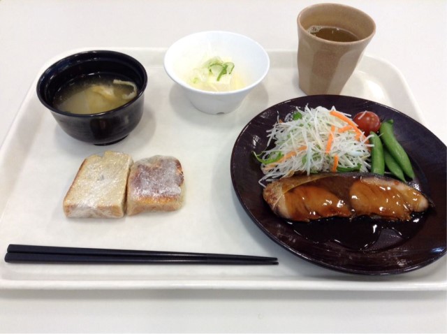 昼食:ブリの照り焼き定食+生おからパン 糖質17gくらい