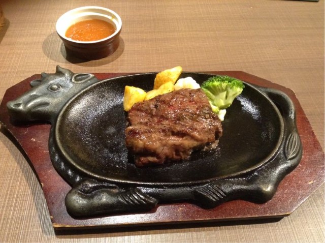 夕食:贅沢にもステーキ(volks) ポテトと人参残し 糖質不明 まあ10gくらいかなあ