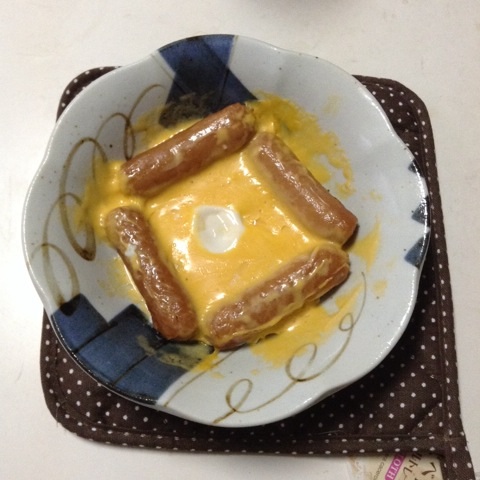朝食:ウインナーの巣篭もり卵 チーズのっけ 糖質6gくらい