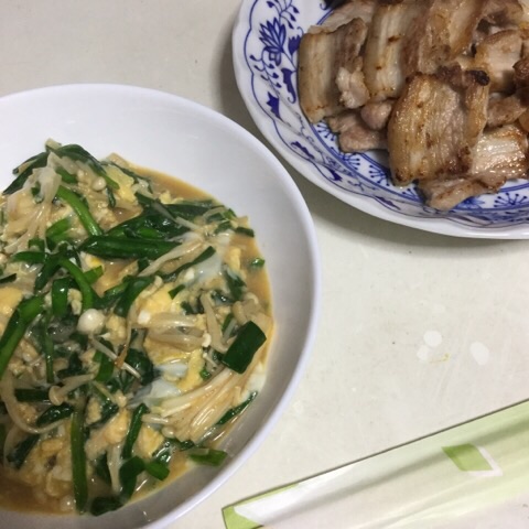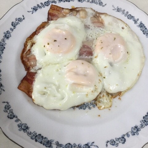 昼食:ベーコンエッグ(写真有り)、白和え(写真無し)