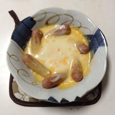 朝食:ウインナーの巣篭もりたまご チーズのっけ 糖質6gくらい