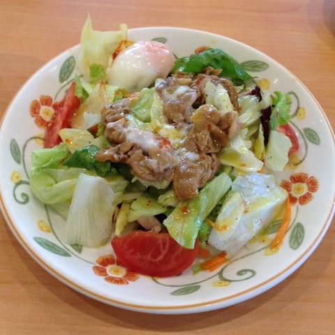 昼食:あったかポーク温玉サラダ&辛口チキン(サイゼリヤ)