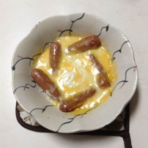 朝食:ウインナーの巣篭もりたまご チーズのっけ 糖質6gくらい