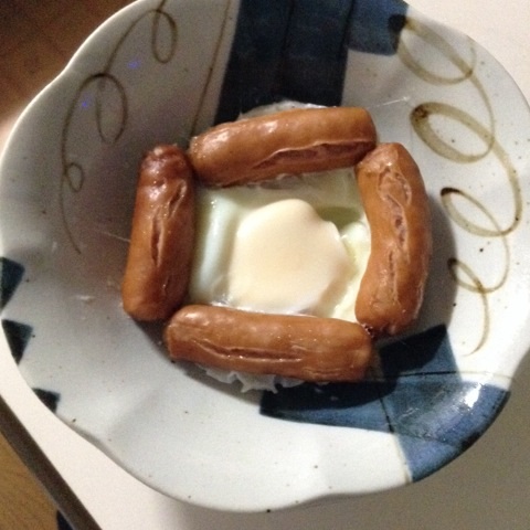 朝食:ウインナーの巣篭もり卵 糖質5gくらい