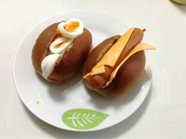 朝食:ローソンのブランパンで作ったサンドイッチ(ツナマヨ+たまご&ミニフランクフルト+チェダーチーズ) 糖質10gくらい