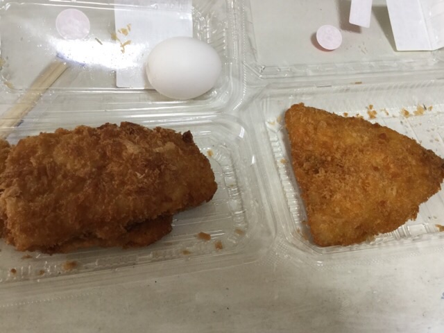 昼食:ゆで卵、フライ食べ放題(違)