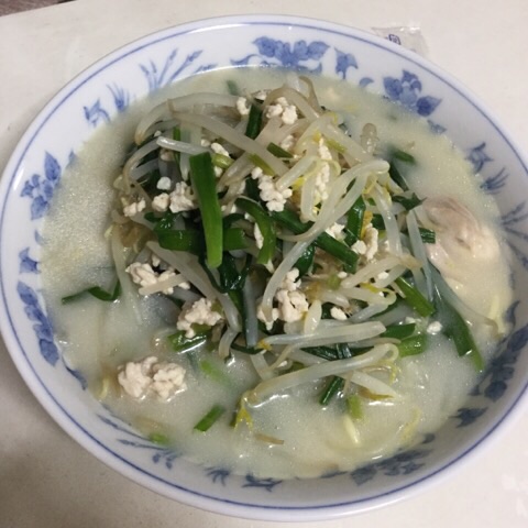 具はニラ、もやし、鶏肉です。