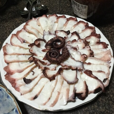 ふぐ刺しは兄が釣って、釣り宿が肝の処理をして、おば(元寿司屋)が切りました。