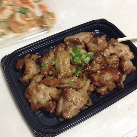 夕食:ネギ塩チキン、蒸し鶏とくらげの和え物