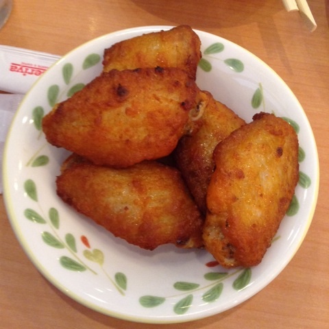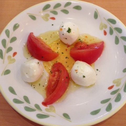 昼食:サイゼリヤで久々辛味チキン、トマトとモッツアレラのサラダ