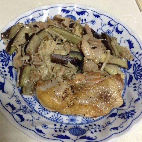 夕食:豚コマとナスのみそマヨ炒め、鳥ももソテー