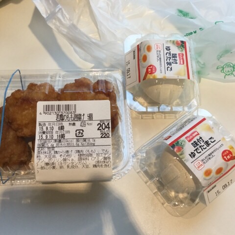 昼食:ゆで卵、からあげ
