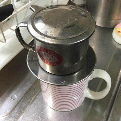 コーヒーはおいらがベトナムコーヒーフィルターを持参して、一杯一杯淹れました。