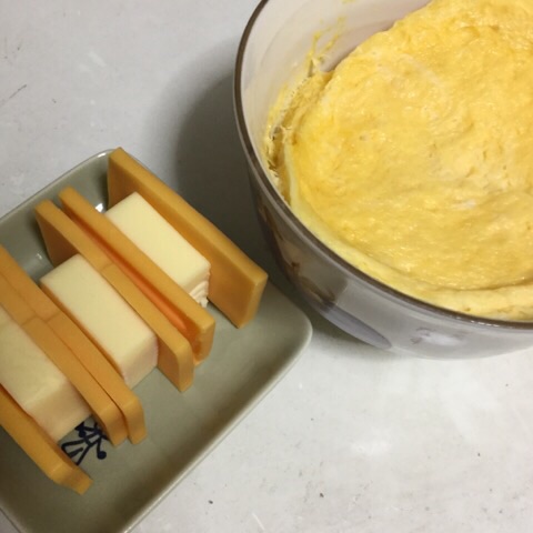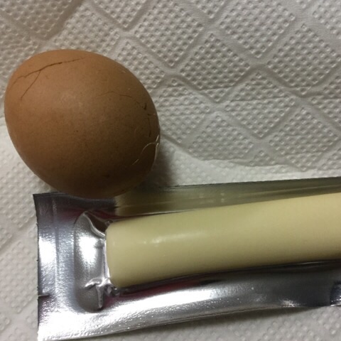 夕食:たまごと粉チーズのレンチン、チーズのバターサンド