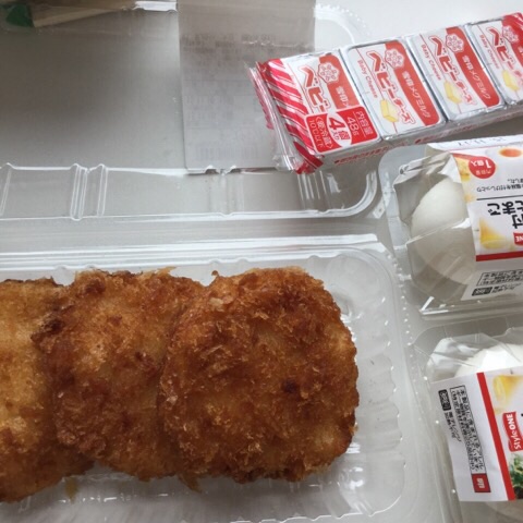 昼食:チーズチキンカツ、ゆでたまご、チーズ