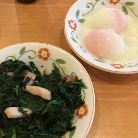 ほうれん草のソテー 温玉&チーズ追加