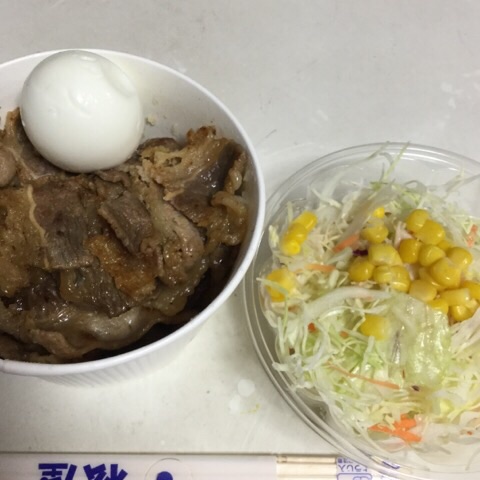 夕食:安定の松屋+ゆでたまご