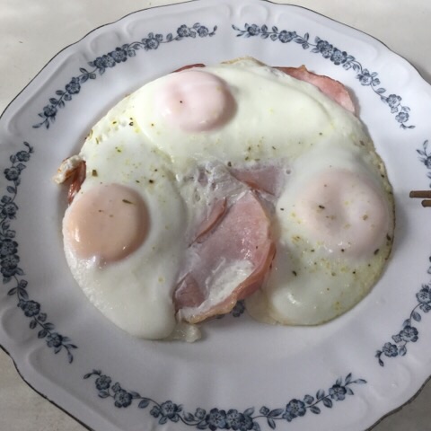 昼食:ハムエッグ