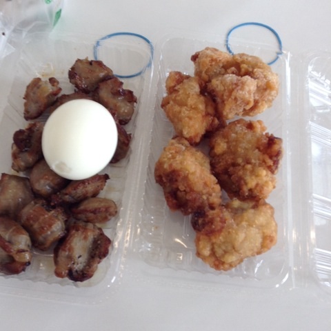 昼食:唐揚げ、ゆで卵、砂肝