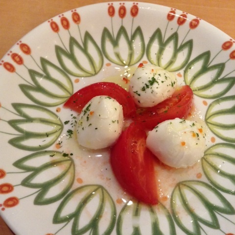 昼食:サイゼリヤで辛味チキン、トマトとチーズのサラダ