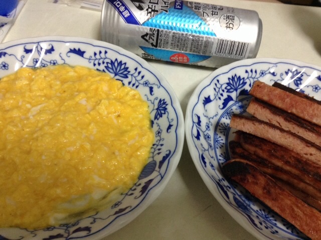 夕食:ポークたまご(二人分)