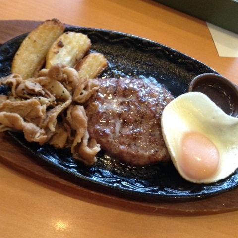 昼食:サイゼリヤでポーク焼肉ハンバーグ