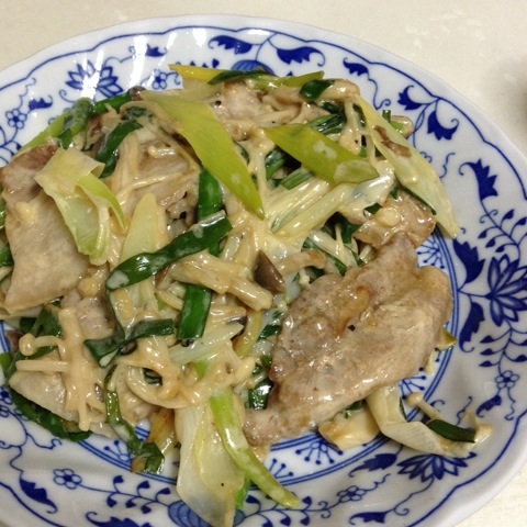 夕食:豚バラと野菜のオイマヨ炒め!
