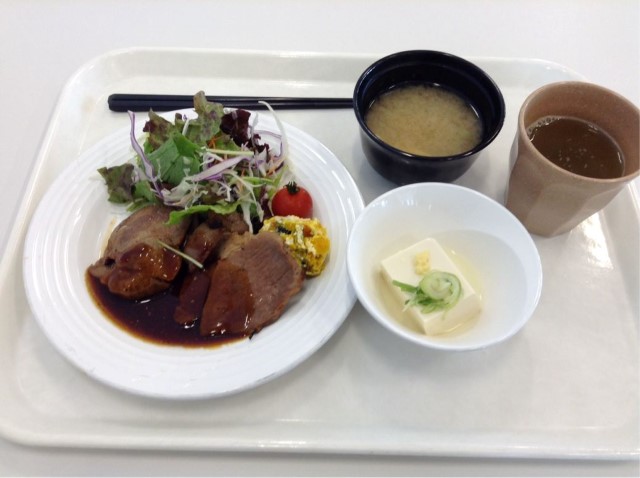 昼食:豚肉の山賊焼き定食(カボチャサラダ&プチトマト残し) 糖質20gくらい