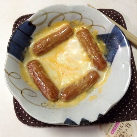 朝食:ウインナーの巣篭もり卵 チーズのっけ 糖質6gくらい