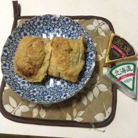 朝食:油揚げメンチ(昨夜の残り)&チーズ 糖質3gくらい