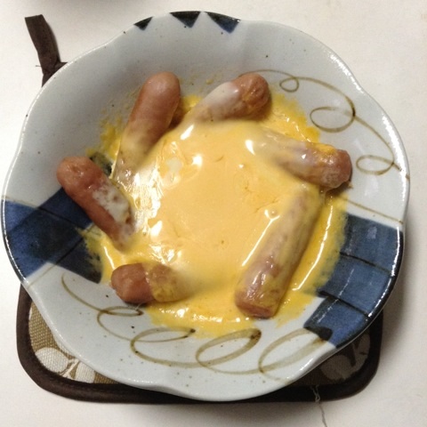 朝食:ウインナーの巣篭もりたまご チーズのっけ 糖質6gくらい
