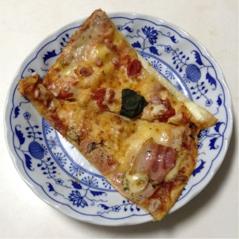 朝食:昨夜のピザの残り 糖質大量(;^_^A